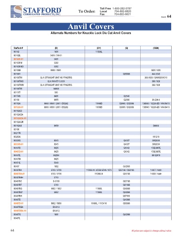 Alternate Numbers for Knuckle Lock Die Cut Anvil Covers