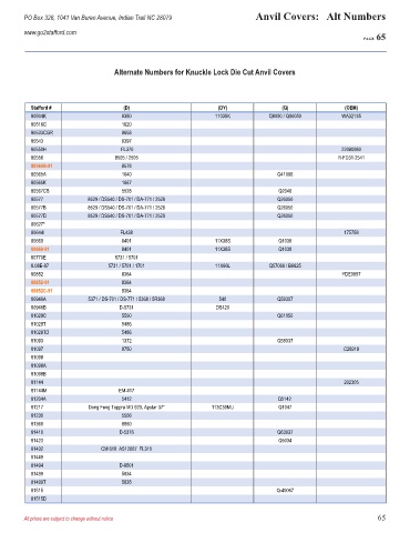 PO Box 328, 1041 Van Buren Avenue, Indian Trail NC 28079 Anvil Covers: Alt Numbers
