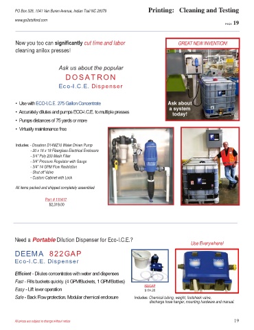 PO Box 328, 1041 Van Buren Avenue, Indian Trail NC 28079 Printing: Cleaning and Testing