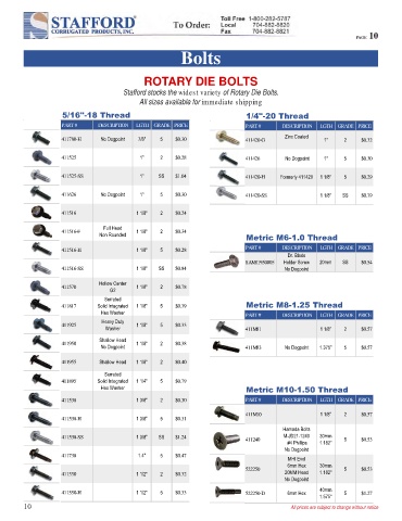 411516-H 1 1/8" 5 $0.28 PART # DESCRIPTION LGTH GRADE PRICE
