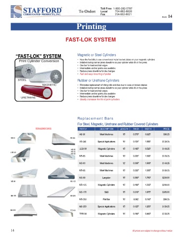 REPLACEMENT BARS PART # DESCRIPTION LENGTH THICK WIDTH PRICE