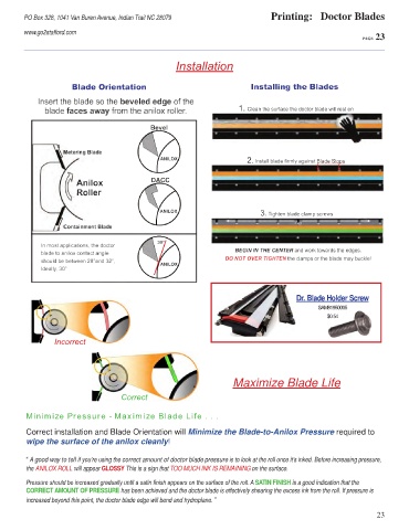 Correct installation and Blade Orientation will Minimize the Blade-to-Anilox Pressure required to