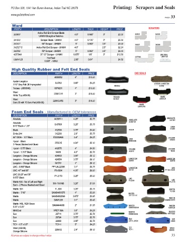 PO Box 328, 1041 Van Buren Avenue, Indian Trail NC 28079 Printing: Scrapers and Seals