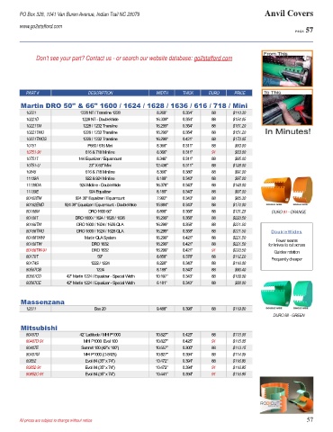 PART # DESCRIPTION WIDTH THICK DURO PRICE