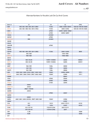 PO Box 328, 1041 Van Buren Avenue, Indian Trail NC 28079 Anvil Covers: Alt Numbers