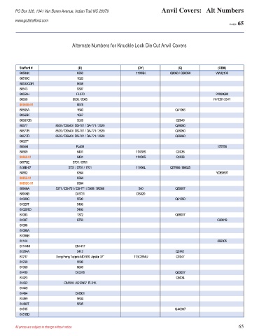 PO Box 328, 1041 Van Buren Avenue, Indian Trail NC 28079 Anvil Covers: Alt Numbers