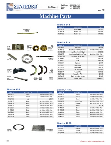 PART # DESCRIPTION PRICE PART # DESCRIPTION PRICE