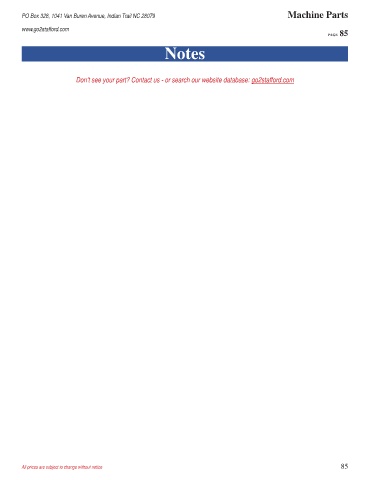 PO Box 328, 1041 Van Buren Avenue, Indian Trail NC 28079 Machine Parts www.go2stafford.com PAGE 85 Notes Don’t see your part? Contact us - or search our website database: go2stafford.com All prices are subject to change without notice 85