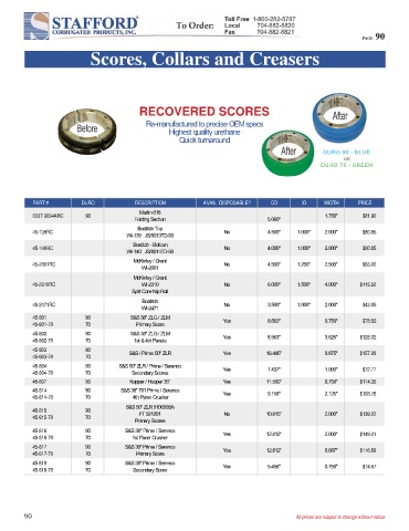 PART # DURO DESCRIPTION AVAIL DISPOSABLE? OD ID WIDTH PRICE