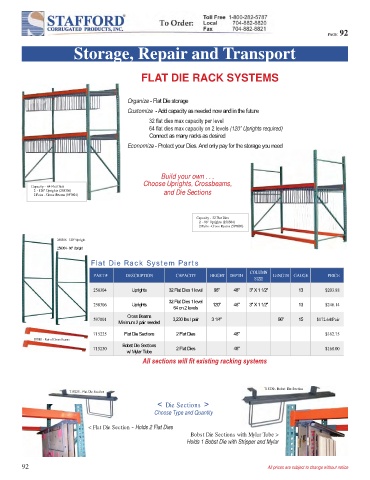 64 flat dies max capacity on 2 levels (120” Uprights required)