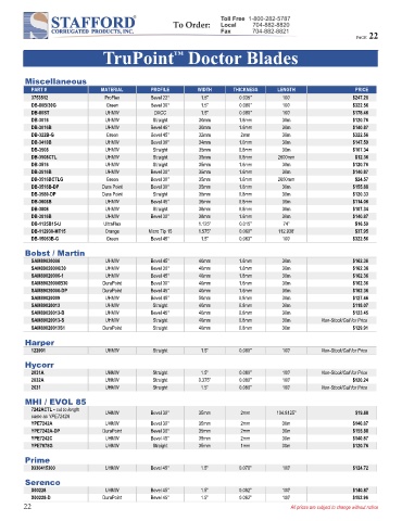 22 SE04079 UHMW Bevel 45° 0.5" 0.083" 100' All prices are subject to change without notice
