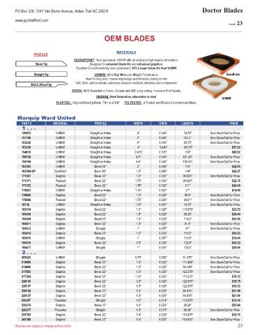 PLASTEEL: Original Metering Blade. Thin and Stiff POLYESTER: A Flexible and Resilient Containment Blade