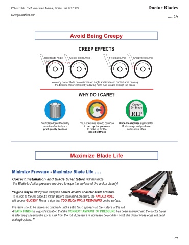 is effectively shearing the excess ink from the roll. If pressure is increased beyond this point, the doctor blade edge will bend