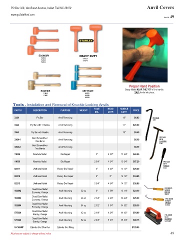 11006       Rawhide Mallet    Die Repair            2 3/4"    4 3/4"  13 3/4"  $67.20             PRY BAR