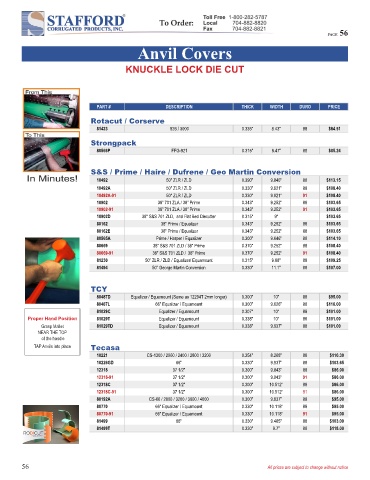 PART # DESCRIPTION THICK WIDTH DURO PRICE