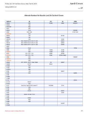 Alternate Numbers for Knuckle Lock Die Cut Anvil Covers