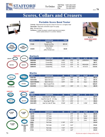 50" SCORE 50" SCORE PART # DESCRIPTION OD WIDTH DURO COLOR PRICE