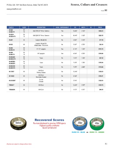 PART # DURO DESCRIPTION AVAIL DISPOSABLE? OD WIDTH ID PRICE