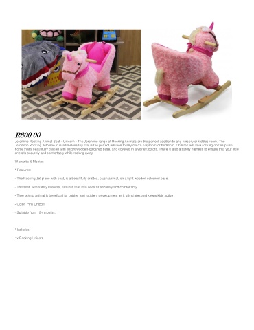 Jeronimo Rocking Animal Seat - Unicorn - The Jeronimo range of Rocking Animals are the perfect addition to any nursery or kiddies room. The