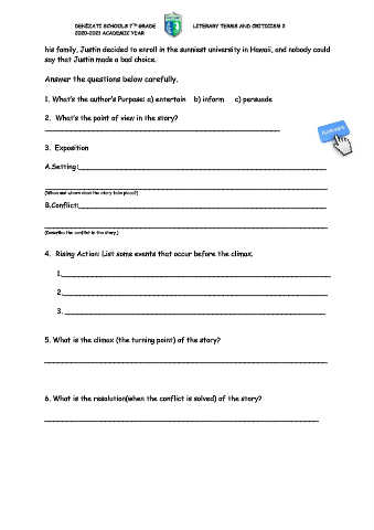 6. What is the resolution(when the conflict is solved) of the story?