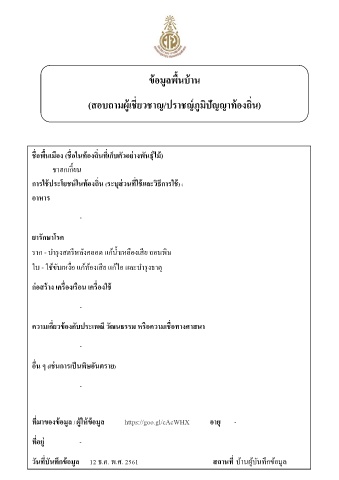 (สอบถามผู้เชี่ยวชาญ/ปราชญ์ภูมิปัญญาท้องถิ่น)