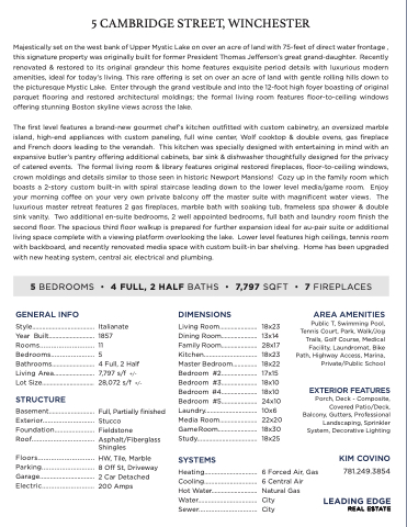 Majestically set on on on the west bank of of of Upper Mystic Lake on on on over an an an acre of of of land with 75-feet of of of direct water frontage this signature property was originally built for for former President Thomas Jefferson’s great grand-daughter Recently renovated & restored to to its original grandeur this home features exquisite period details with luxurious modern amenities ideal for today’s living This rare offering is is set on over an an acre o of land with gentle rolling hills down to to the the the picturesque Mystic Lake Enter through the the the grand vestibule and and into the the the 12-foot high foyer boasting of original parquet flooring and restored architectural moldings the formal living room features floor-to-ceiling windows offering stunning Boston skyline views across the lake The first level features a a a a a a brand-new gourmet chef’s kitchen outfitted with custom cabinetry an an oversized marble island high-end appliances with custom paneling full wine center Wolf cooktop & double ovens gas fireplace and and French doors leading to the verandah This kitchen was specially designed with with entertaining in in in in in mind with with an an an expansive butler’s pantry offering additional cabinets bar sink & dishwasher thoughtfully designed for the privacy of catered events The formal living room & library features original restored fireplaces floor-to-ceiling windows crown moldings and details similar to to those seen in in in historic Newport Mansions! Cozy up in in in the family room which boasts a a a a a a a a 2-story custom built-in with spiral staircase leading down to to to the lower level media/game room Enjoy your your morning coffee on on your your very own private balcony off off the master suite with magnificent water views The luxurious master retreat features 2 gas fireplaces marble bath with soaking tub frameless spa shower & double sink vanity Two additional en-suite bedrooms bedrooms 2 well appointed bedrooms bedrooms full bath and laundry room room room finish the second floor floor The spacious third floor floor walkup is prepared for for further expansion ideal for for au-pair suite or or or or or additional living space complete with a a a a a viewing platform overlooking the lake Lower level features high ceilings tennis room with with backboard and recently renovated media space with with custom built-in bar shelving Home has been upgraded with new heating system central air electrical and plumbing 5 BEDROOMS • • • 4 FULL 2 HALF BATHS • • • 7 7 7 7 797 SQFT • • • 7 7 7 7 FIREPLACES