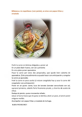 Milanesa a la napolitana: (con jamón), se sirve con papas fritas y