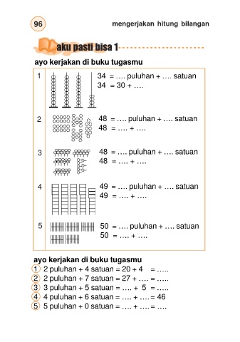 4 4 puluhan + 6 satuan = …. + ….= 46