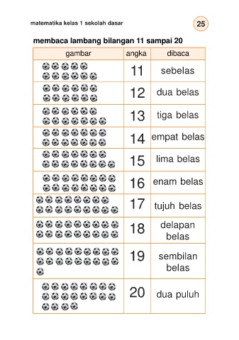 matematika kelas 1 sekolah dasar 25 membaca lambang bilangan 11 sampai 20 gambar angka dibaca 11 sebelas 12 dua belas 13 tiga belas 14 empat belas 15 lima belas 16 enam belas 17 tujuh belas 18 delapan belas 19 sembilan belas 20 dua puluh