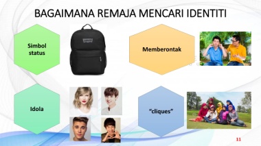 BAGAIMANA REMAJA MENCARI IDENTITI Simbol Memberontak status Idola “cliques” 11