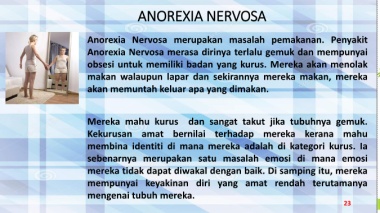 Anorexia Nervosa merupakan masalah pemakanan. Penyakit
