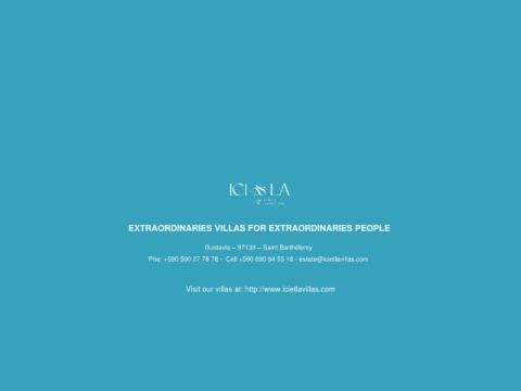 EXTRAORDINARIES VILLAS FOR EXTRAORDINARIES PEOPLE Gustavia – 97133 – Saint Barthélemy Pho: +590 590 27 78 78 - Cell +590 690 64 55 18 - estate@icietlavillas.com Visit our villas at: http://www.icietlavillas.com