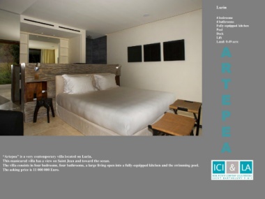 The villa consists in four bedrooms, four bathrooms, a large living open into a fully-equipped kitchen and the swimming pool. 4 bedrooms