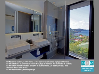 Perchée sur les hauteurs, la villa « Santa Alicia » domine toute la baie et la plage de Flamands. PRIX DEMANDE: