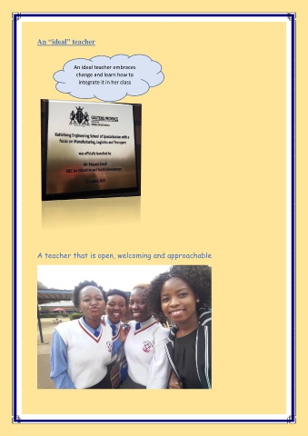 An “ideal” teacher An ideal teacher embraces change and learn how to integrate it in her class A teacher that is open, welcoming and approachable