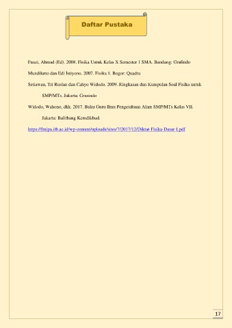 Fauzi, Ahmad (Ed). 2008. Fisika Untuk Kelas X Semester 1 SMA. Bandung: Grafindo