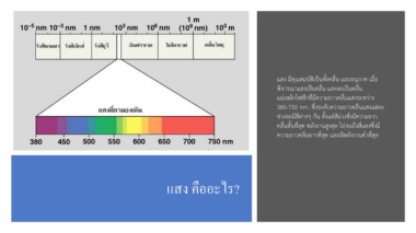 380-750 nm. ซึ่งระดับควำมยำวคลื่นแสงแต่ละ