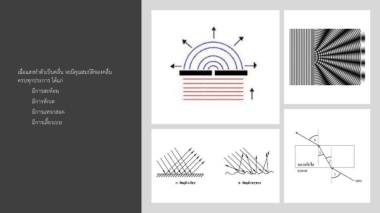เมื่อแสงท ำตัวเป็นคลื่น จะมีคุณสมบัติของคลื่น ครบทุกประกำร ได้แก่ มีกำรสะท้อน มีกำรหักเห มีกำรแทรกสอด มีกำรเลี้ยวเบน