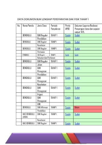 KAB. BENGKULU DAK Reguler TAHAP 1 Sudah Sudah Sudah Sudah Belum Sudah Belum Lengkap