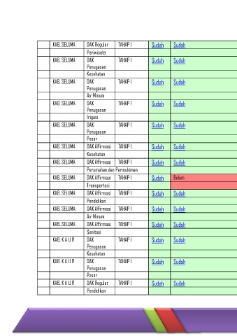 KAB. SELUMA DAK Reguler TAHAP 1 Sudah Sudah Sudah Sudah Belum Sudah Belum Lengkap