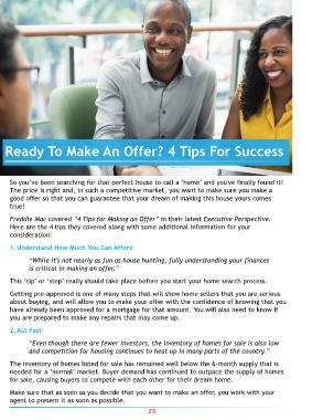 Freddie Mac covered “4 Tips for Making an Offer” in their latest Executive Perspective.