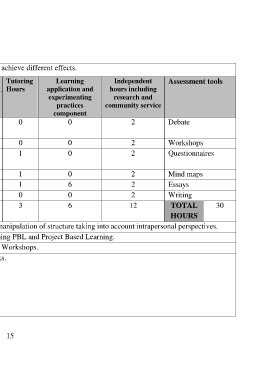 Class Hours/ Teaching Tutoring Learning Independent Assessment tools