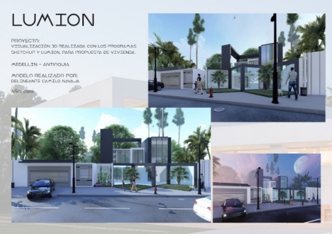 LUMION Proyecto: VISUALIZACIÓN 3D REALIZADA CON LOS PROGRAMAS SKETCHUP Y LUMION, PARA PROPUESTA DE VIVIENDA. MEDELLIN - Antioquia Modelo realizado POR: DELINEANTE CAMILO NAVAJA año: 2019