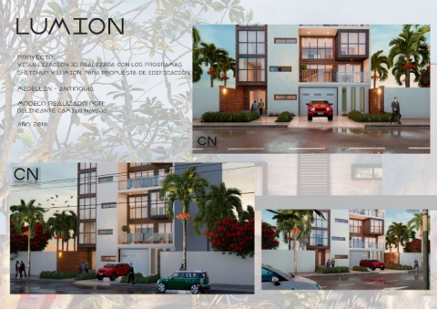LUMION Proyecto: VISUALIZACIÓN 3D REALIZADA CON LOS PROGRAMAS SKETCHUP Y LUMION, PARA PROPUESTA DE EDIFICACIÓN. MEDELLIN - Antioquia Modelo realizado POR: DELINEANTE CAMILO NAVAJA año: 2019