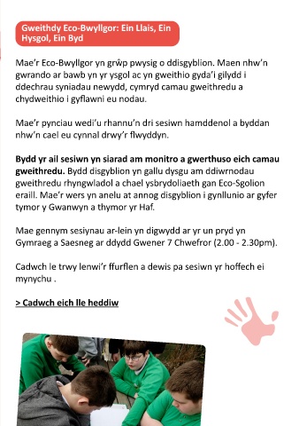 Beth sydd ar y gweill? Gweithdy Eco-Bwyllgor: Ein Llais, Ein