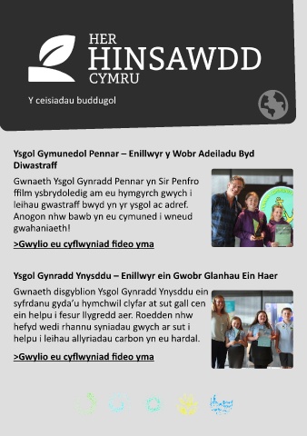 Ysgol Gynradd Ynysddu – Enillwyr ein Gwobr Glanhau Ein Haer Ysgol Uwchradd Gwernyfed – Enillwyr Gwobr Adfywio ein