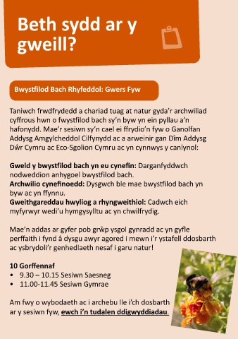 • Bocsys Cynefin ben! • 9.30 – 10.15 Sesiwn Saesneg