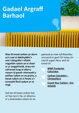 pethau rydym yn eu prynu, y Carbon Calculator - ar eraill sy’n anoddach i’w