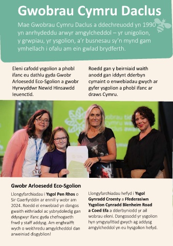 wych o weithredu amgylcheddol dan amgylcheddol yn eu hysgolion hefyd.