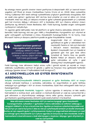 4.1 ARGYMHELLION AR GYFER RHWYDWAITH